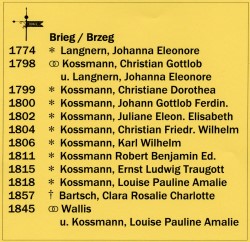 Aus Brieg stammen viele der Sippe Kossmann. Bertha Kossmann, die Großmutter meines Großvaters, ist zwar in Glaz geboren, aber ihr Vater Ernst Ludwig Traugott Ko. und dessen Vorfahren sind aus Brieg.