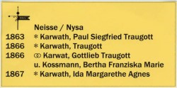 Neisse ist lange Zeit der Wohnort von Bertha und Traugott Karwath gewesen. Hier haben sie in der Garnisonskirche geheiratet und vier ihrer Kinder sind hier geboren (das erstgeborene Mädchen ist bald nach der Geburt gestorben).