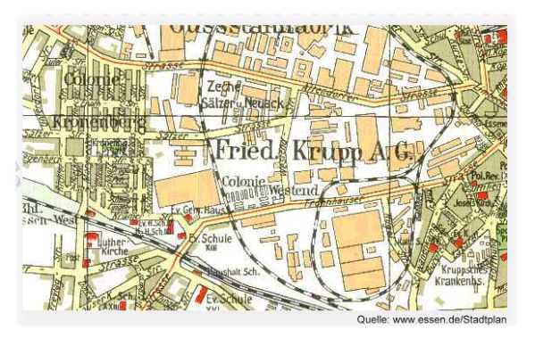 des Werksgeländes der Fa. Krupp zu erkennen.