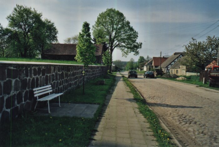 Der Blick von der Kirchhofmauer die Dorfstraße entlang.